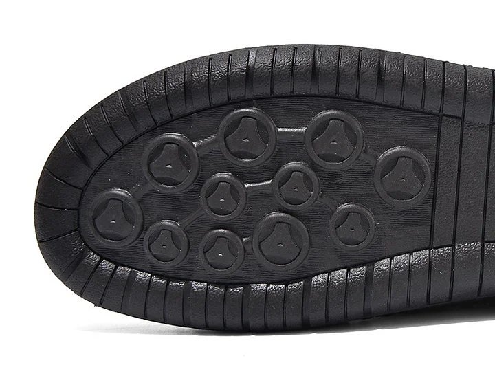 Die robuste Gummisohle bietet Halt auf nassen Blättern, verschütteten Flüssigkeiten an Tankstellen und sogar auf vereisten Stufen. Flexkerben passen sich Ihren Schritten auf natürliche Weise an und sorgen für solide Stabilität, ohne dass Sie klobige Wanderschuhe tragen müssen. Von verschneiten Einfahrten bis hin zu rutschigen Büroböden – Sie sind bestens gerüstet.