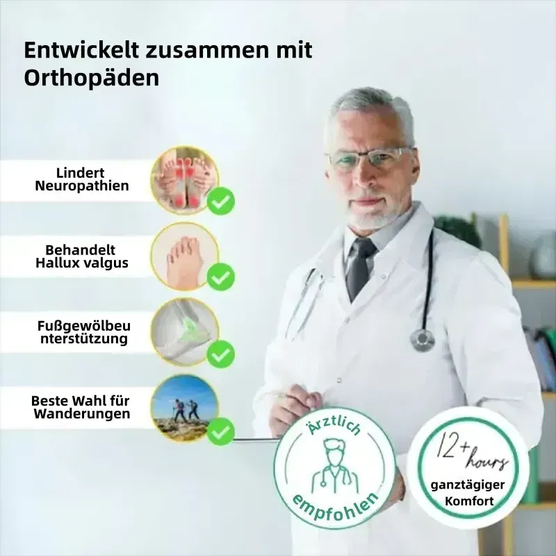 Die geräumige Zehenkappe gibt Ihren Füßen Platz zum Atmen – kein Drücken, kein Druck. Ideal, wenn Sie unter Ballenzehen oder Schwellungen leiden oder einfach nur zusätzlichen Komfort für lange Tage auf den Beinen wünschen.