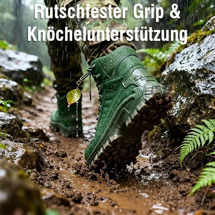 Die Außensohle der Wanderschuhe bietet hervorragenden Grip und Rutschfestigkeit. Die EVA-Zwischensohle sorgt für optimale Stoßdämpfung und passt sich flexibel unterschiedlichem Gelände an – ideal zum Klettern, Laufen und Springen.